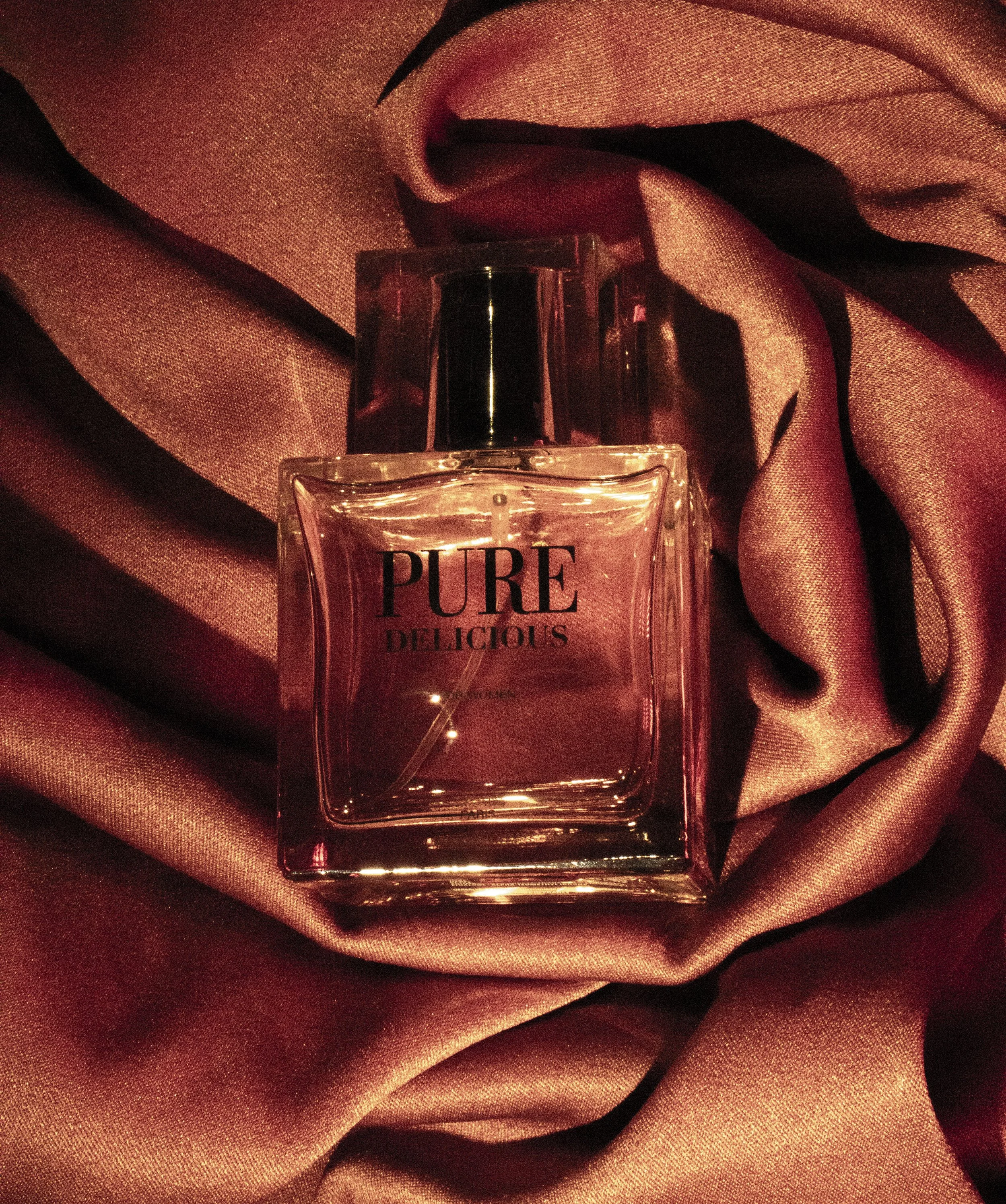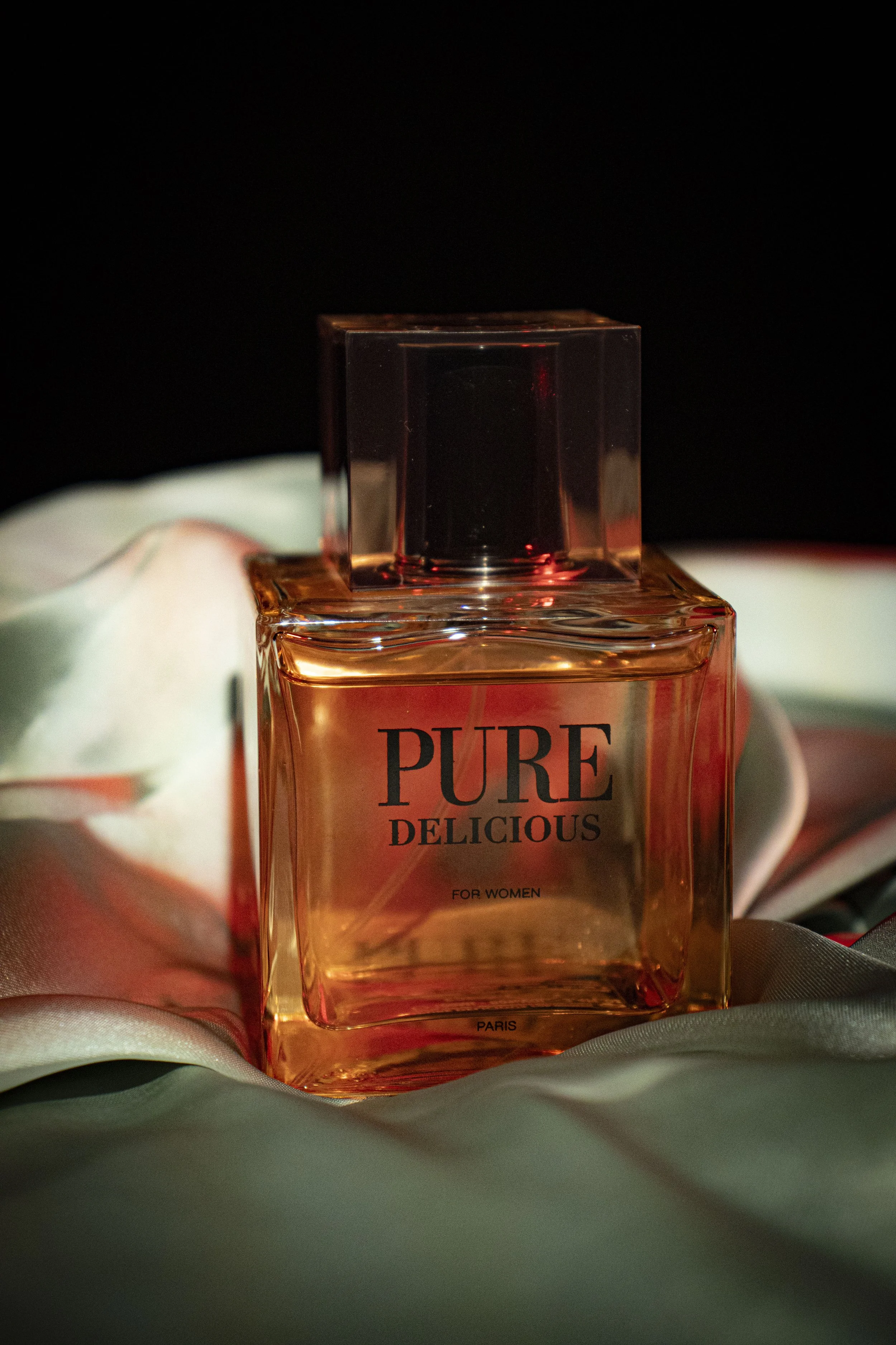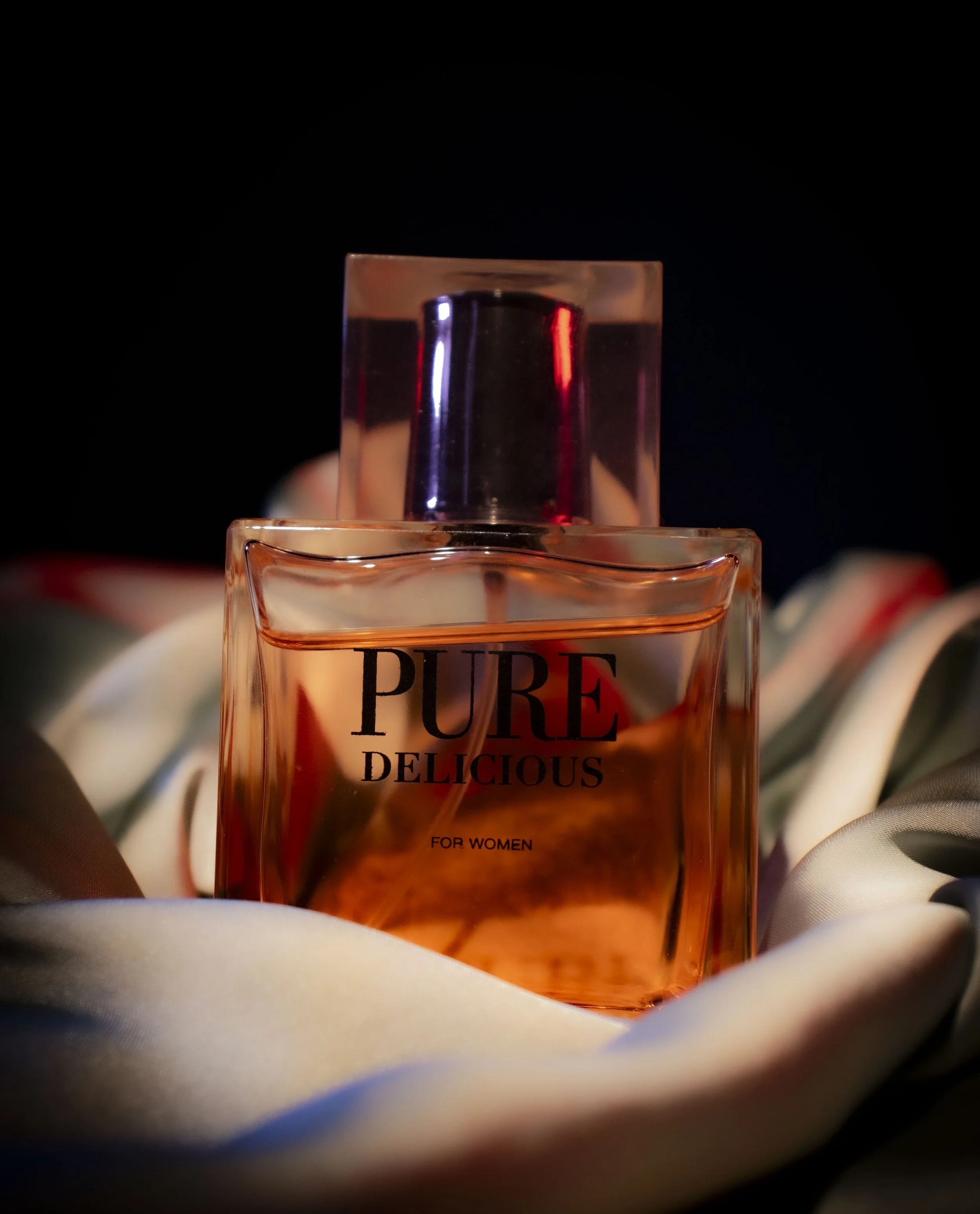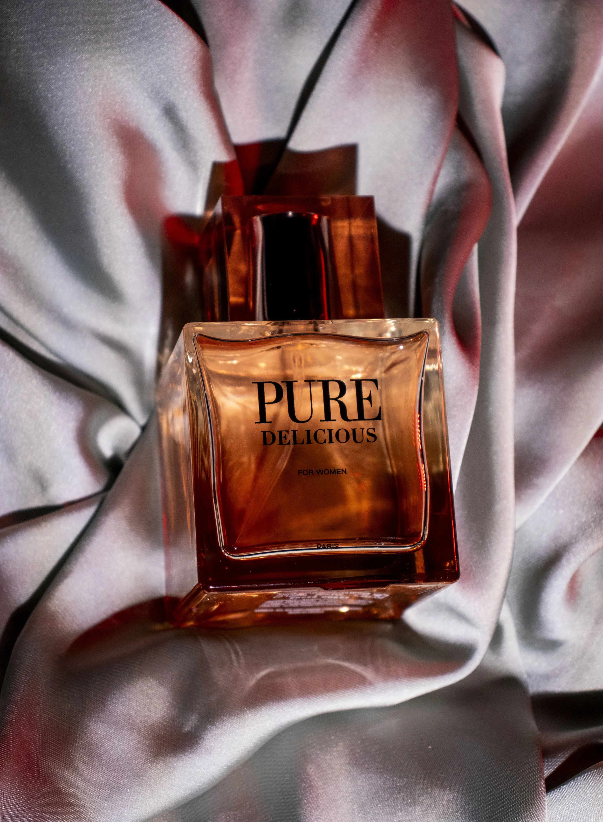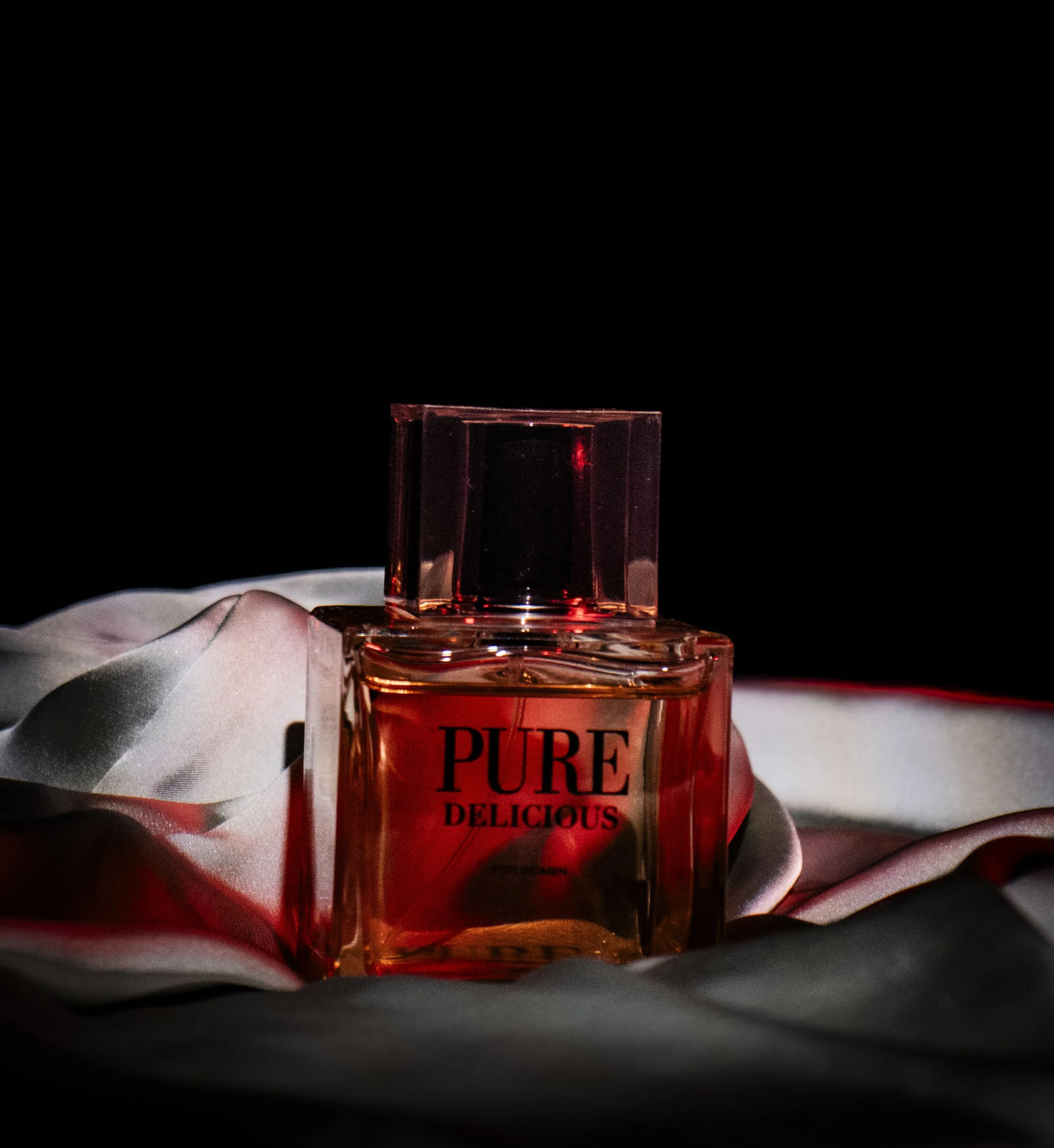 For a class project, I set up a photo shoot to capture professional, commercial photos of a perfume named “PURE Delicious”. And here are the results of the picture session.