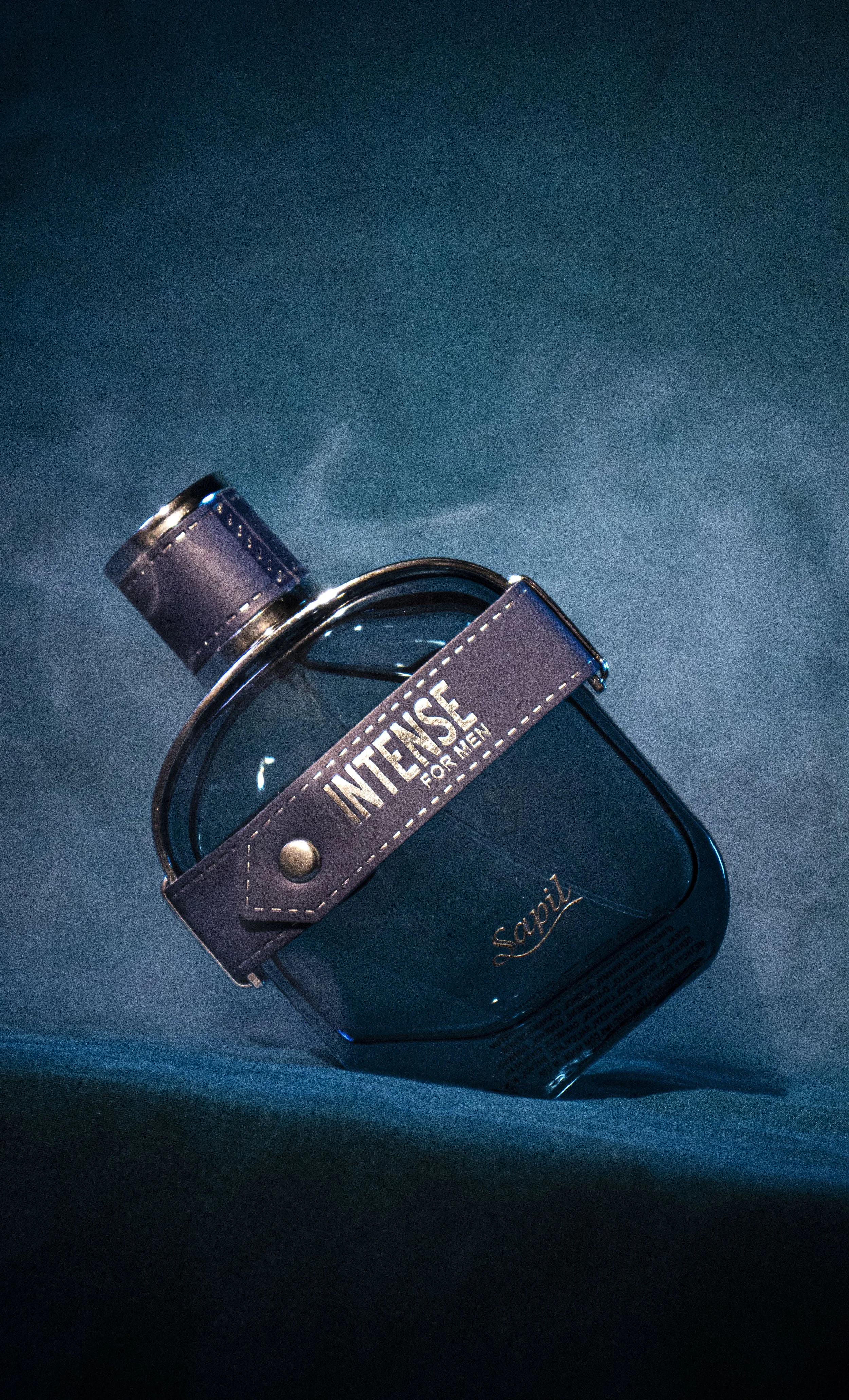 For a class project, I set up a photo shoot to capture professional, commercial photos for a man’s perfume named "Intense.”. And here are the results of the picture session.